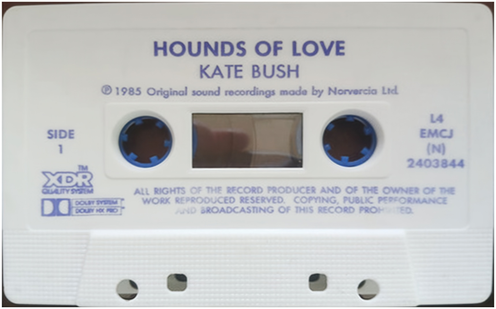 'XDR' release in plastic case with insert and white cassette, featuring sixth track 'Running Up That Hill (12" Single Version)' on Side A.