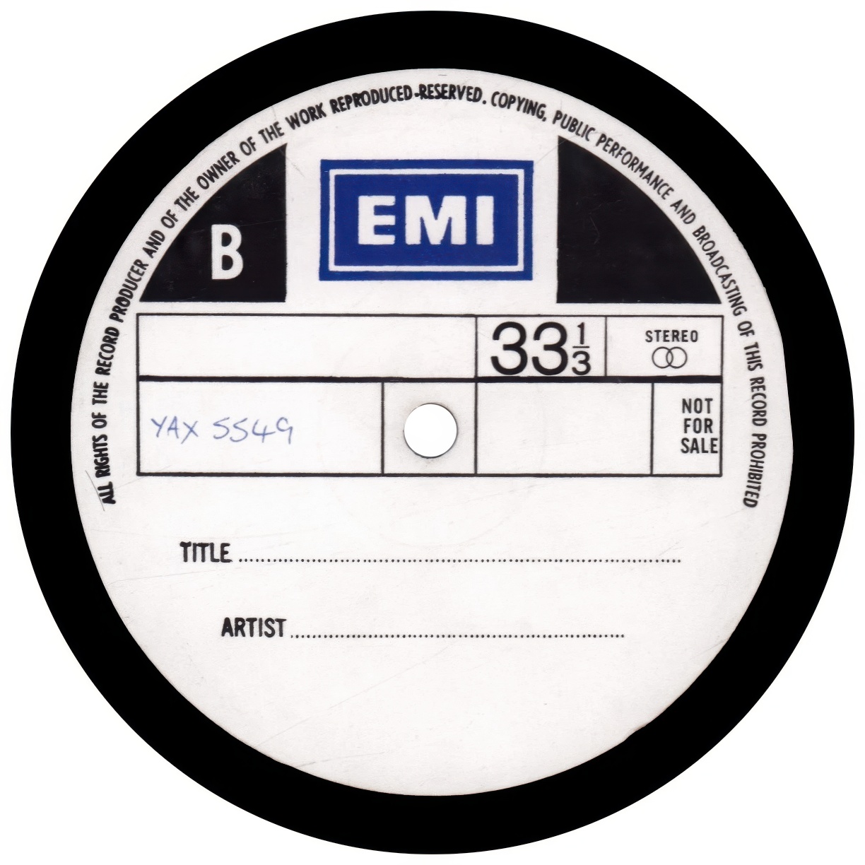 Test pressing release in generic sleeve with annotated company labels.